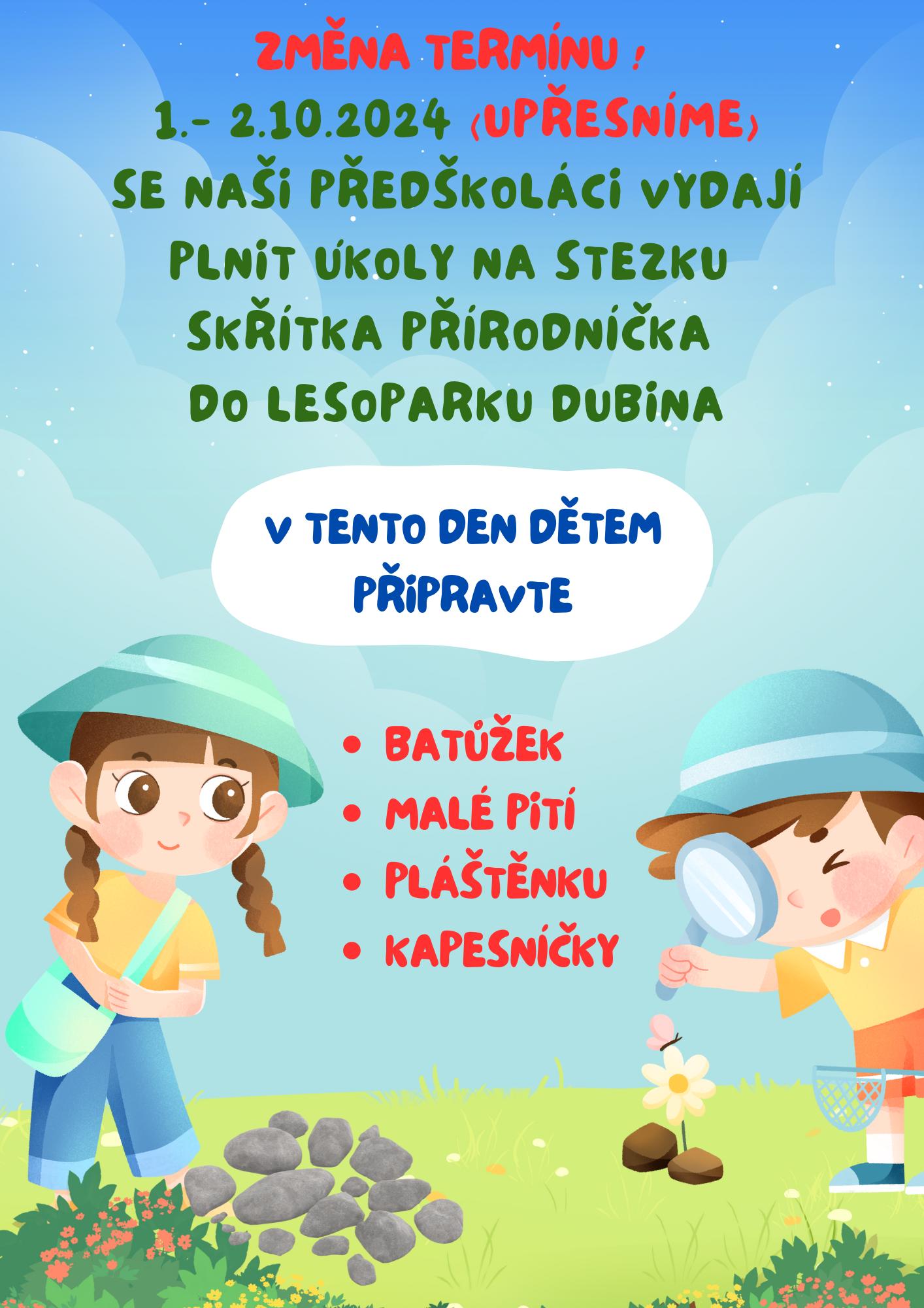 Naši předškoláci se vyddají na stezku Skřítka Přírodníčka 2.10.2024.